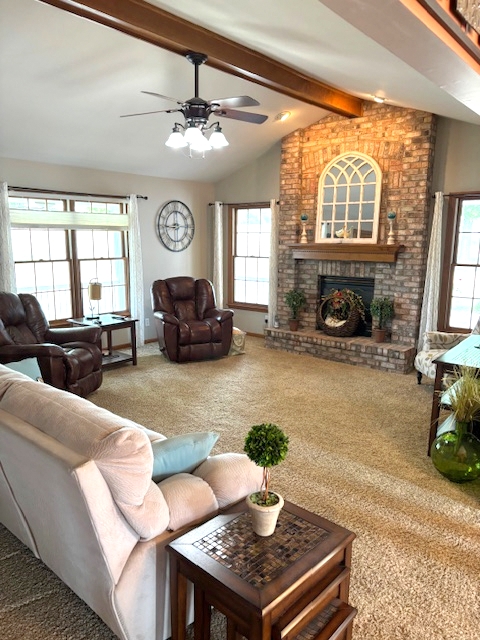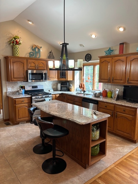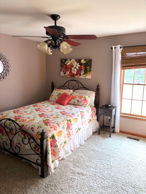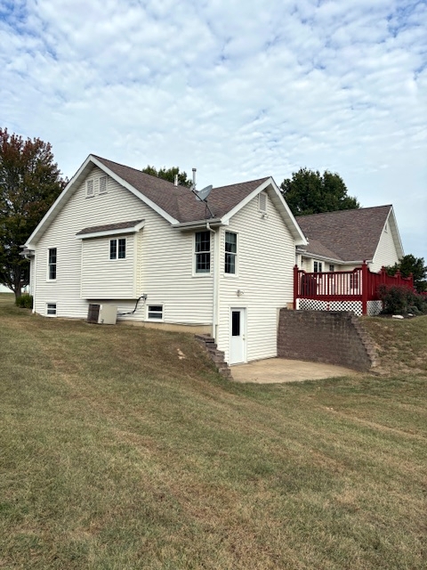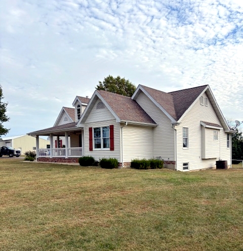 Improvements: Home consisting of 1753 sq. ft. being kitchen/dining combination opening into large living room with gas fireplace and vaulted ceiling, primary bedroom with full bath featuring large tub and separate shower and walk-in closet, 2 additional bedrooms, guest bath and main floor laundry. Flooring is a combination of tile, hardwood and carpet. Home has had many updates including kitchen cabinets, granite countertops, flooring and painting. The full walkout basement is partially finished with full bath and storage area. Other features include a wraparound front porch, 2-car garage, concrete patios and a 16×24 deck with access from sliding doors out of dining room. Home has gas forced air heat with central air, vinyl siding and shingle roof with window dormers to vaulted ceiling. Home has county water, septic system and natural gas. There is an easement along the south side of the property for a natural gas line.